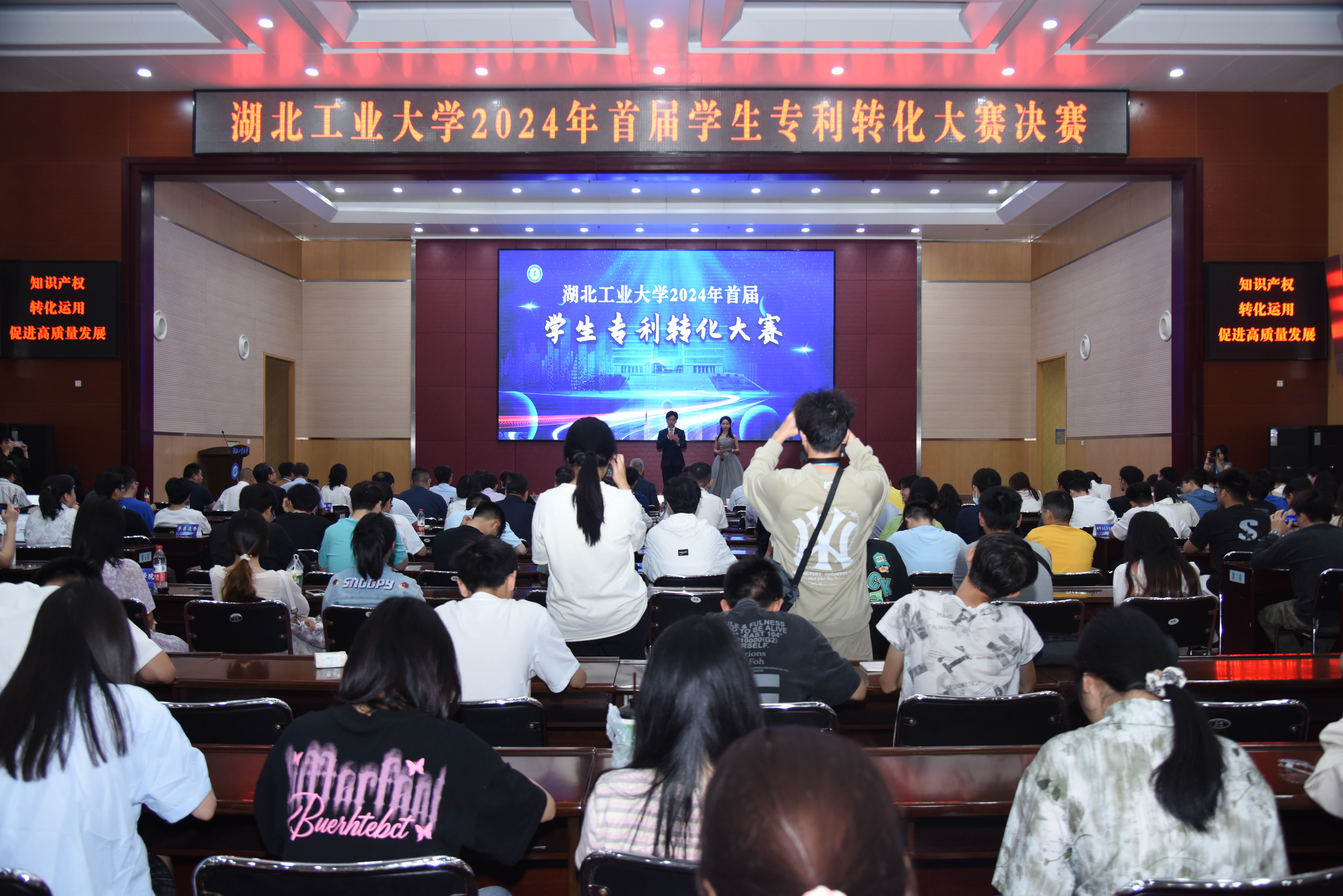 湖北工业大学2024年首届学生专利转化大赛决赛现场。